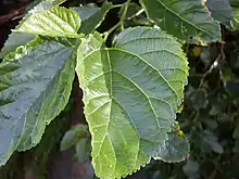 La feuille de mûrier est utilisée en médecine traditionnelle chinoise et ayurvedique comme antibronchitique, hypoglycémique, antihypertenseur, anticholestérol, anticoagulant, antithrombotique, anti-athérosclérotique[2], anti-obésité et anti-hyperlipidémie[3]. Son haut potentiel antioxydant donne lieu à des recherches actives.