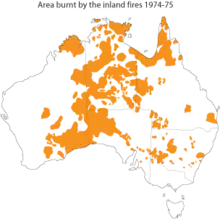 La saison des feux de brousse de 1974 à 1975 en Australie est une série de feux de brousse, qui ont brûlé l'Australie. Les incendies de cette saison ont brûlé environ 117 000 000 ha[1] (1 170 000 km²), soit 15% de la surface terrestre totale du continent. Les incendies se sont produits en Australie centrale pendant la saison des feux[2]. Mais contrairement aux feux de 2019-2020, les feux de brousse de 1974-1975 ont été dus à un surplus de végétation. En effet, il y eut des précipitations exceptionnelles les deux années précédentes, transformant des zones désertiques en zones plus vertes. La végétation touchées par ces incendies de 1974 et 1975 était constituée principalement d'herbes et de buissons, alors que les feux de 2019-2020 ont affecté également des forêts. De plus, les feux de 1974-1975 touchaient des régions inhabitées[3].