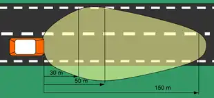 La règlementation française impose que les feux de route éclairent au moins jusqu'à cent mètres de distance. Ils doivent être au nombre de deux ou quatre sur les véhicules de plus d'1,30 mètre de largeur[2]. Elle autorise l'emploi de lampes d'une puissance maximale de 60 watts par dispositif d'éclairage.[réf. nécessaire]