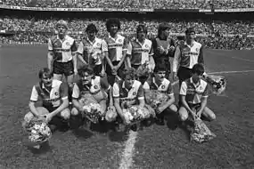 Feyenoord qui avait toujours perdu face aux grosses équipes européennes[Note 5], participe à la Coupe des clubs champions grâce à son titre de 1969 où il y élimine en novembre 1969 l'AC Milan, tenante du titre, avant de remporter le trophée 2 à 1 après prolongations face au Celtic Glasgow le 6 mai 1970 à San Siro. Feyenoord remporte ensuite la Coupe intercontinentale, et bien qu'éliminé la même année dès le premier tour par l'UT Arad en Coupe des clubs champions, l'équipe arrache le titre de champion des mains de l'Ajax lors d'une victoire 3 à 1[Note 6]. Ces années de succès prennent fin avec le titre de champion en 1974 et avec la victoire aux dépens de Tottenham Hotspur en Coupe UEFA la même année.