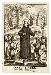 Fiacre (Fiacrius, Frefus, Fèfre, Fèvre ; en gaélique : Fiachra, Fiachrach, Fiach, le corbeau)[1], né v. 590 dans le Connacht, près de Kilkenny et mort le 30 août vers 670 (ou plutôt en 620 selon Gabriel Buzlin au XVIe), est un moine herboriste anachorète. Irlandais de noble origine[2], il fonda près de Meaux un monastère épiscopal, où il est enterré.