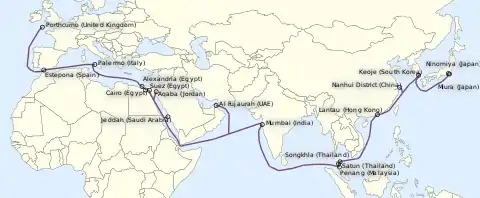 Le segment Europe-Asie a été posé par Cable & Wireless Marine au milieu des années 1990 et a fait l'objet d'un article de Neal Stephenson dans le magazine Wired en décembre 1996[2].