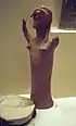 | Figurine féminine aux bras levés. | Statuette en terre cuite peinte. | 1250 à 1180 av. J.-C. HR IIIB2 |