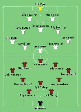Le jeu de West Ham contraste avec le style défensif de Bolton. Il est caractérisé par des mouvements rapides et un jeu d'attaque qui attire au club de nombreux soutiens[15]. L'équipe de Londres entame la compétition par un match à l'extérieur qu'elle remporte 3-2 contre le club de deuxième division de Hull City[16],[17]. Lors du deuxième tour, les joueurs londoniens obtiennent le match nul à l'extérieur, chez le club de troisième division sud Brighton and Hove Albion, mais remportent la seconde rencontre, le match rejoué disputé à domicile, par un but à zéro[18],[19]. Les Hammers battent une nouvelle équipe de troisième division sud, Plymouth Argyle, lors du troisième tour[20]. West Ham est opposé à un adversaire plus difficile au quatrième tour, Southampton. Le premier match dans le stade de West Ham, le Boleyn Ground, se termine sur le score de 1-1, tout comme le match rejoué à The Dell, stade de Southampton[21],[22]. Les deux équipes doivent se rencontrer une troisième fois sur terrain neutre à Villa Park, le terrain d'Aston Villa dans la ville de Birmingham. Ce troisième match est le dernier puisque West Ham gagne un but à zéro grâce à un but de Billy Brown[23]. Le but décisif est inscrit à la 70e minute par un coup franc qui termine dans les buts de Southampton sans que le gardien ne puisse arrêter la frappe de Brown[24]. En demi-finale, West Ham rencontre Derby County à Stamford Bridge, le terrain de Chelsea. Le club de Londres remporte la rencontre 5-2[25]. Brown marque deux nouvelles fois et Billy Moore réalise également le doublé[26]. Toutes les équipes que West Ham a battues pour atteindre la finale jouent en deuxième division ou à un niveau inférieur. West Ham devient le premier club depuis l'introduction de plusieurs divisions dans la Football League à atteindre la finale de la Coupe d'Angleterre sans avoir battu une équipe de première division[27].