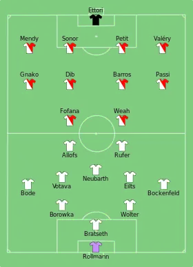 | 11 - 0 | 6 - 0 (E) | 5 - 0 (D) | Seizièmes de finale | 10 - 1 | 2 - 1 (E) | 8 - 0 (D) | ||