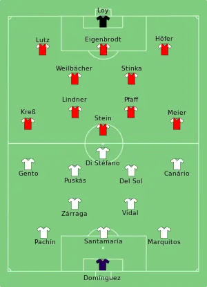 La finale de la Coupe des clubs champions européens 1959-1960 voit le Real Madrid remporter sa cinquième Coupe des clubs champions d'affilée, en battant le club ouest-allemand de l'Eintracht Francfort, sur le large score de 7-3. En termes d'affluence, 127 621 spectateurs, c'est un record pour une finale de C1 et dans l'histoire des coupes d'Europe de football[1]. Alfredo Di Stéfano et Ferenc Puskas se partageront à eux deux les sept buts inscrits par la formation espagnole. Francfort est la première formation allemande à atteindre la finale de cette compétition. Ce match est considéré comme l'une des meilleures rencontres des clubs de l'histoire.