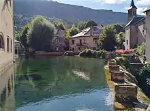 Elle se situe également au confluent de trois cours d'eau : la source du Pêcher peuplée de grosses truites, le Tarnon, la Mimente et le Tarn. Voilà pourquoi Florac se dit être au carrefour de la pierre et de l'eau.