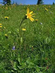 - Arnica des montagnes (Arnica montana), appelée aussi « Herbe à tabac », « Tabac des Vosges », « Tabac des Savoyards », « Souci des Alpes », Astéracée