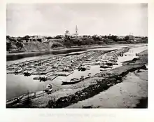 Train de bois sur la rivière Bengawan à Ngandong, Indes orientales néerlandaises.
