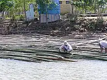 - Les radeaux en roseaux ou papyrus ligaturés en bottes compactes[21] (bundle raft) sont réalisés par les techniques de la vannerie torsadée en faisant des bottes de roseau que l’on attache les unes aux autres. Ces radeaux sont connus par les représentations des cultures antiques égyptienne, mésopotamienne ou indienne[17],[21].