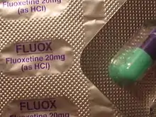 Le chlorhydrate de fluoxétine (Prozac, Sarafem) est un psychotrope de type inhibiteur sélectif de la recapture de la sérotonine (ISRS) utilisé comme antidépresseur dans le traitement de la dépression de type sévère (c’est-à-dire caractérisé et plus haut stade de la maladie ; le risque de suicide y est très important en particulier chez les jeunes de 18 à 25 ans), des troubles obsessionnels compulsifs, de la boulimie nerveuse, des troubles dysphoriques prémenstruels, et de nombreux autres états.