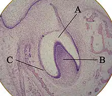 - (en) Cet article est partiellement ou en totalité issu de l’article de Wikipédia en anglais intitulé « Enamel organ » (voir la liste des auteurs).