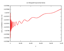 est vraie infiniment souvent dans chaque voisinage de 0. Le graphe sur la droite montre que ce comportement n'est pas facile à illustrer : les oscillations ne sont clairement visibles que lorsque les 100 premiers millions de termes de la série ont été sommés, et pour .