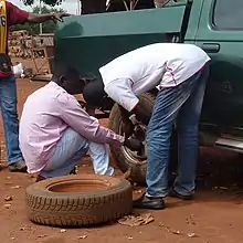 Les roues sur une automobile sont au nombre de quatre, plus, généralement, une roue de secours non montée. Cette dernière est parfois remplacée par un kit anti-crevaison ou, pour des motifs d'encombrement, par une roue dotée d'un pneu réduit (galette) permettant en cas de crevaison d'un pneumatique de rouler à vitesse modérée jusqu'au prochain garage. Chaque roue est formée de l'assemblage d'un pneumatique monté sur une jante. Cet ensemble forme un espace étanche gonflé d'air, parfois d'azote (pour une moindre déperdition).