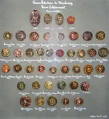 Initialement, tous les tailleurs de pierre de Strasbourg font partie de la même corporation et, par tradition, la bannière, important objet de prestige, est conservée à l’atelier de la cathédrale, dont le maître d’œuvre est également maître de la corporation[7]. Cette situation n’est pas sans provoquer des conflits entre les artisans de l’Œuvre Notre-Dame et les autres. Le plus important de ceux-ci a lieu à la fin du XIVe siècle : les artisans « privés », profitant d’une vacance de la maîtrise d’œuvre de la cathédrale, s’emparent de la bannière, qu’ils refusent ensuite de restituer. Cet incident entraîne une bataille judiciaire, qui se solde par la séparation : désormais les tailleurs de pierre de l’Œuvre Notre-Dame feront corporation à part, avec leurs propres règlements et leur propre bannière[8].