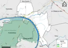 La commune compte 60 lieux-dits administratifs[Note 5] répertoriés consultables ici[45] (source : le fichier Fantoir) dont la Coudre, Massoury, Barbeau (château du XIXe siècle et emplacement de l'ancienne abbaye de Barbeau).