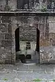 Fontaine monumentale de plan carré renforcée de contreforts diagonaux sur les angles, ajourée sur trois côtés de baies en anse de panier. La fontaine est couverte d'une voûte de pierre à extrados caréné, sommé d'une croix sur base fleuronnée (rapportée). Construction en grand et moyen appareil de granite et moellons de schiste. Le mur de fond présente deux niches à statuette (vide). De nombreuses traditions lui sont rattachées : les amoureux y jetaient une épingle qui attachant le fichu de leur bien-aimé ; si elle surnageait, l'amoureux était sûr de l'innocence de sa belle. La fontaine était aussi consultée par les maris jaloux ou encore par les victimes d'un vol : celles-ci devaient s'y rendre à jeun et jeter des croûtons dans la fontaine en donnant à chacun le nom d'une personne soupçonnée ; celui qui restait au fond désignait le coupable ; cette façon de procéder était encore attestée en 1832[1],[2].