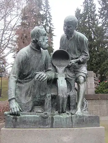 La composition de granite d'esprit Art nouveau conçue par l'architecte Birger Federley comprend trois sculptures en bronze d'Emil Wikström[2],[3].