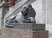 Installés à Boulogne-Billancourt, les lions furent d'abord séparés, deux disposés rue de l'Ancienne-Mairie, deux autres rue du 25-août-1944[4]. Aujourd'hui, on peut admirer les quatre lions dans le square des frères Farman, rue de Silly, où ils ont retrouvé leur fonction d'élément de fontaine et crachent à nouveau de l'eau dans un large bassin[5].