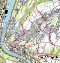 L'occupation des sols de la commune, telle qu'elle ressort de la base de données européenne d’occupation biophysique des sols Corine Land Cover (CLC), est marquée par l'importance des territoires artificialisés (54 % en 2018), en augmentation par rapport à 1990 (46,6 %). La répartition détaillée en 2018 est la suivante : zones urbanisées (54 %), terres arables (17,5 %), zones agricoles hétérogènes (16,6 %), forêts (11,8 %), prairies (0,1 %)[16]. L'évolution de l’occupation des sols de la commune et de ses infrastructures peut être observée sur les différentes représentations cartographiques du territoire : la carte de Cassini (XVIIIe siècle), la carte d'état-major (1820-1866) et les cartes ou photos aériennes de l'IGN pour la période actuelle (1950 à aujourd'hui)[Carte 1].