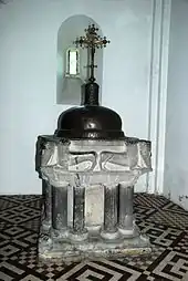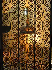 ![]() Les fonts baptismaux derrière leur grille en fer forgé. |