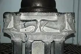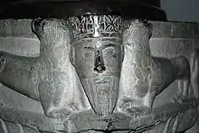 ![]() Angle de la cuve orné d'une tête couronnée. |