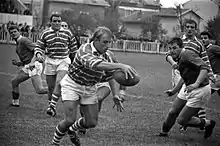 Le club dispute ensuite une demi-finale du Championnat contre Pau[35] en 1946. Les 4 saisons suivantes seront plus difficiles. En 1947, l'ailier Varo Cardesi commence un long bail de 12 saisons en équipe première et commence déjà à enchaîner les essais[36] mais Grenoble manque la qualification[37].