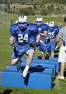 - de porteurs de ballon - running backs : rapides et puissants, leur but est de franchir le rideau défensif adverse. Il existe deux postes de running backs : le demi-arrière nommé halfback (HB), très rapide, et le fullback (FB) plus puissant mais moins rapide en règle générale que le halfback, il est également utilisé comme nettoyeur de la défense devant le halfback.