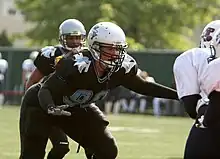 - de cinq hommes de ligne offensive - offensive linemen (OL). Ce sont des travailleurs de l'ombre imposants qui protègent le quarterback des défenseurs qui pourraient le menacer et qui ouvrent des brèches dans la défense pour les porteurs de ballon. L'un d'entre eux, le centre, a pour fonction supplémentaire de transmettre le ballon au quarterback au début de chaque phase de jeu - on parle de snap. La ligne offensive est assujettie à des règles particulières qui restreignent leur placement, leur numérotation, ainsi que la possibilité pour eux de réceptionner une passe avant. Il leur est interdit de recevoir le ballon. Ce sont des joueurs capitaux pour le bon fonctionnement d'une attaque, mais ils sont généralement méconnus du public. Cette ligne est composée du centre, des offensive tackles et des offensive guards.