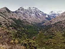 - La forêt de Tartagine au sud (commune d'Olmi-Cappella). La forêt occupe la partie Sud-ouest du territoire de la commune d'Olmi-Cappella, soit un vaste cirque montagneux qui est le bassin versant de la rivière Tartagine, formé au Nord par la ligne de crête précitée qui la sépare de la forêt de Mélaja et des hauts sommets que sont Punta Radiche (2 112 m), Capu a u Dente (2 029 m), Monte Corona (2 144 m), Capu a u Corbu (2 082 m), Cima di a Statoghia (2 305 m) et Monte Padro (2 390 m).