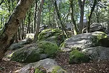 - le massif du Duc à l'est (74 ha), sur une butte de blocs rocheux.