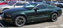 La Mustang Bullitt est revenue en février 2008 en tant que variante de la Mustang GT, dont la dernière version avait auparavant été produite en 2001. Cela rappelle la Mustang GT-390 fastback Dark Highland Green pilotée par Steve McQueen dans le film Bullitt de 1968. Disponible en peinture extérieure Dark Highland Green ou Black sans spoiler et emblèmes de garde-boue GT; le faux bouchon d'essence sur le couvercle du coffre est remplacé par une version Bullitt unique. La calandre équipée de phares antibrouillard standard de la Mustang GT est remplacée par une calandre spécialement conçue avec un style sans le logo du poney soulignée par un accent en aluminium. Les roues à bride euro Dark Argent Gray de 18 pouces en aluminium coulé sont utilisées avec des étriers de frein assortis et des embouts d'échappement plus grands de 89 mm remplacent les embouts standard de 76 mm de la Mustang GT. Bien que les persiennes des fenêtres latérales (aussi nommées vitres de quart arrière) (comme vu sur la photo) ne soient pas standard, elles sont ajoutées par les propriétaires car elles sont similaires à celles de la Mustang Fastback de 1968.