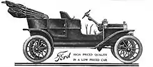 La Ford T (surnommée familièrement Tin Lizzie ou Flivver aux États-Unis) est une automobile fabriquée de 1908 à 1927 par la Ford Motor Company sous la direction de Henry Ford. La Ford T fait de 1908 l'année historique où l'automobile entre dans l'ère de la grande série. Elle est généralement considérée comme la première voiture accessible au plus grand nombre, celle qui « mit l'Amérique sur des roues ». La première Ford T de série sort de l'usine Ford de l'avenue Piquette à Détroit le 27 septembre 1908.