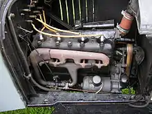 - Moteur : 4 cylindres verticaux, cycle à 4 temps, 20 ch, 3 pouces 3/4 × 4 pouces (95,25 × 101,6 mm), cylindrée 2 896 cm3, cylindres coulés d'un seul bloc, avec chambres d'eau autour de la moitié supérieure du bloc. Fonte grise à grains fins.