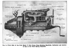 - Allumage : Magnéto Ford, basse tension, composée d'une couronne d'induits solidaires du bloc moteur et d'un rotor d'aimants permanents sur le volant moteur.