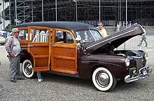 Après la capitulation officielle du Japon en septembre 1945, la production de voitures civiles a lentement repris. La Ford de 1946 était identique au modèle de 1942 sous la carrosserie, bien qu'une nouvelle calandre épaisse avec des barres horizontales et des accents rouges rafraîchisse le style. Le capot a été élargi par l'ajout d'une bande centrale. Un changement notable a été d'utiliser le moteur 239 qui, depuis 1939, était utilisé dans les Mercury et les pick-ups, est capable de 100 ch (75 kW) pour la première fois. Avec une pénurie d'acier, Ford a produit un cabriolet «Sportsman» distinctif avec des panneaux latéraux en bois, fourni par l'usine Ford Iron Mountain. Le cabriolet avait un toit électrique au lieu d'un manuel[4].