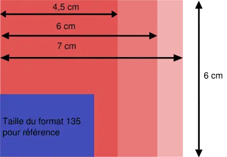 | 120 | Bobine | « 6 × 4,5 » : 56 × 41 mm[8] « 6 × 6 » : 56 × 56 mm[8] |