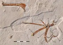 - à côté de cet Archaeopteryx, un genre généralement considéré comme le plus ancien oiseau volant connu, Oliver W. M. Rauhut et ses collègues ont décrit en 2019 un autre fossile d'avialien basal, non rattaché cependant à la famille des Archaeopterygidae. Il s'agit d'un fossile partiel limité à une aile droite isolée. Il a, dans un premier temps, été considéré comme le treizième spécimen d'Archaeopteryx. Les auteurs ont cependant montré que cet animal était différent et un petit peu plus proche des oiseaux modernes qu'Archaeopteryx et l'ont nommé Alcmonavis poeschli[5].