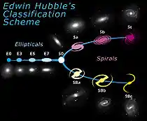 Malgré ses nombreuses réussites, cette image ne suffit pas à expliquer la variété des structures que nous observons parmi les galaxies. Celles-ci apparaissent avec une grande variété de formes, depuis les galaxies elliptiques arrondies et sans particularité, jusqu'aux galaxies spirales dont la forme aplatie rappelle celles de crêpes.