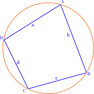 où est le demi-périmètre du quadrilatère, a, b, c et d sont les longueurs de ses côtés et S son aire [1].