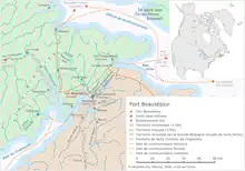Le fort Beauséjour (renommé par les Britanniques en fort Cumberland) est situé dans le hameau d'Aulac, à Pont-à-Buot, dans la province canadienne du Nouveau-Brunswick, juste au nord de la rivière Mésagouèche qui forme, par son cours d'eau, la frontière avec la province voisine de la Nouvelle-Écosse. Le fort est un lieu historique national depuis 1920.