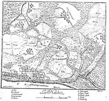 « Ils étaient tous armés et accomodés comme s'ils avaient voulu aller à la chasse, et en passant chez les habitants qu'ils connaissaient le plus, ils empruntaient leurs fusils, avec promesse de leur apporter du chevreuil en quantité. Pour ôter tout soupçon, ils apportèrent ce qu'ils devaient en grains, en huile, et autres denrées, tandis qu'un parti était allé avec deux calumets chez le sieur d'Etcheparre, qui commandait le poste, et auquel ils portaient des poules, pour le maintenir dans la confiance où il était que les sauvages ne méditaient rien de mauvais contre les Français, comme ils avaient eu soin d'en assurer la veille, sur quelques bruits qui s'étaient répandus que les Natchez devaient assassiner les Français. La confiance de cet officier était allée jusqu'à faire mettre aux fers sept habitants qui avaient demandé à s'assembler pour prévenir le malheur dont ils étaient menacés. Cette même confiance lui avait fait voir sans crainte une trentaine de sauvages dans le fort, autant dans sa maison et dans les environs tandis que le reste de cette nation était partagé dans toutes les maisons de nos habitants et jusque dans les ateliers de nos ouvriers, qui étaient dans les cyprières au-dessus et au-dessous des Natchez. Cette disposition faite, et l'heure venue, l'assassinat général de nos Français a été le signal de l'affaire, tant elle a été courte ; une seule décharge l'ayant terminée, à l'exception de la maison du sieur la Loire des Ursins, dans laquelle il y avait huit hommes, dont six ont été tués, et dont les deux autres se sont sauvés, la nuit, sans que les sauvages aient pu les forcer pendant le jour. Le sieur la Loire des Ursins était monté à cheval lorsque l'attaque a commencé, et n'ayant pu rentrer dans sa maison, il s'est défendu jusqu'à la mort, ayant tué quatre sauvages ; sa maison en a tué huit (Ce malheur ne serait pas arrivé, si ce brave officier n'avait pas été destitué quelque temps auparavant). Ainsi, il n'en a coûté que douze hommes aux Natchez, pour nous en détruire deux cent cinquante, par la faute de l'officier commandant, qui aurait mérité seul le mauvais sort que tous ces malheureux ont partagé avec lui. Il était facile pour lui, avec les armes et le monde qu'il avait, de faire retomber sur nos ennemis une perte qui a mis cette colonie à deux doigts de la sienne, comme on va le voir[1]. »