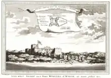 Gravure de Jacobus van der Schley de la vue du sud-ouest, 1727, d'après un croquis de William Smith
