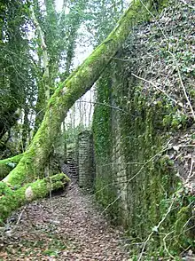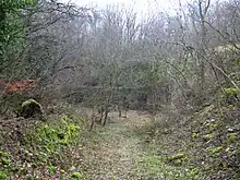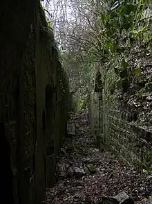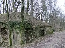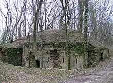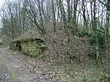 La batterie nord-ouest de Planoise est située à 489 mètres d'altitude, sur la tête sud-ouest de l'enveloppe du fort principal[36]. Elle se compose de cinq éléments maçonnés (six en comprenant l'abri-caverne annexe) engoncés au sein d'une dense buxaie[Note 11], tous édifiés en 1877[36]. La batterie possède un glacis offrant un large point de vue sur Avanne-Aveney, dont une partie est aménagée en position d'infanterie[36]. Les ouvrages sont tous globalement jugés en bon état de conservation, et sont librement accessibles[36].