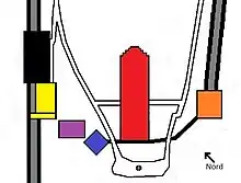 NB : la ligne marron du couloir couvert symbolise le barrage causé par un éboulement.