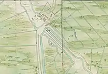 - Carte intitulée : Petite carte topographique des emprises de terreins qui ont été, lors de la construction du fort la Hayne, en 1752, aux dames religieuses de l'abbaye d'Epinlieu, á Mons; dressée, en 1767, par le chevalier de Teraillon, major et ingénieur, à l'occasion d'une demande desdites religieuses, tendante à rentrer en jouissance de leurs propriétés.1752-1767, conservé par les Archives générales du Royaume - I 003 - 2038