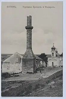 La forteresse de Khotin (en ukrainien : Хотинська фортеця, Khotins'ka fortetsia ; en moldave/roumain : Cetatea Hotin, en polonais : twierdza w Chocimiu ; en turc : Hotım Kerman) est une forteresse de l’ancienne principauté de Moldavie située dans la ville moderne de Khotin, aujourd'hui en Ukraine. Elle s’élève sur la rive droite (sud) du Dniestr, dans l’oblast de Tchernivtsi et est comptée parmi les « Sept merveilles d'Ukraine ». Elle faisait partie, avec Soroca, Tighina et Cetatea Albă, des quatre points fortifiés par les souverains moldaves, surplombant les quatre principaux gués du Dniestr. Toutes ont été convoitées et fréquemment assiégées par les peuples guerriers des steppes, par le Royaume polono-lituanien, par l’Empire ottoman et par l’Empire russe (qui, en 1812, finira par toutes les annexer)[3].