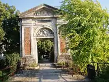 Pour faciliter la circulation, le projet de percement d’une nouvelle porte dans le prolongement du quai du bassin est proposé en 1855[34]. Le projet de détail est remis le 28 avril 1857[34], et une nouvelle entrée monumentale est livrée à la circulation en 1863[34].
