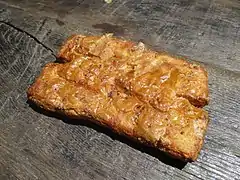La fougasse ou fougace , du latin panis focacius, est une spécialité culinaire traditionnelle de la cuisine provençale, pain provençal plat à croûte molle, à mie épaisse et moelleuse, réalisé à partir de farine de blé, de levure de boulanger, et d'huile d'olive, éventuellement agrémentée ou fourrée d'olives, d'oignons, d'anchois, de lardons, de fromage, de sauce tomate, de champignons, ou d'herbes de Provence[1]. Également très populaire dans le Languedoc-Roussillon, elle est préparée avec de la pâte levée feuilletée et des grattons de canard[2]. Elle peut être également sucrée et briochée dans les Alpes du Sud ou à Saint-Gilles-du-Gard, et fait partie des treize desserts de la tradition provençale.