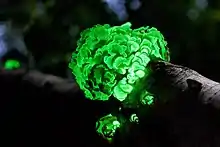 Un Foxfire (lit. Feu de renard), parfois appelé Feu de fée ou encore Feu de chimpanzé, résulte de la bioluminescence créée par certains mycètes présents dans le bois mort. La lueur bleu-verdâtre visible est due à une luciférase, une enzyme oxydante, qui émet de la lumière lorsqu'elle est en contact avec une luciférine. Diverses hypothèses sont émises à propos du rôle de cette bioluminescence : attraction d'arthropodes (notamment les moucherons mycophages (en) qui y déposent leurs œufs) dispersant les spores fongiques principalement par zoochorie, signal aposématique d'avertissement propre à protéger ces champignons contre les mammifères herbivores[1].
